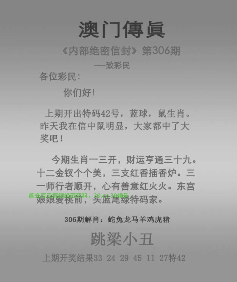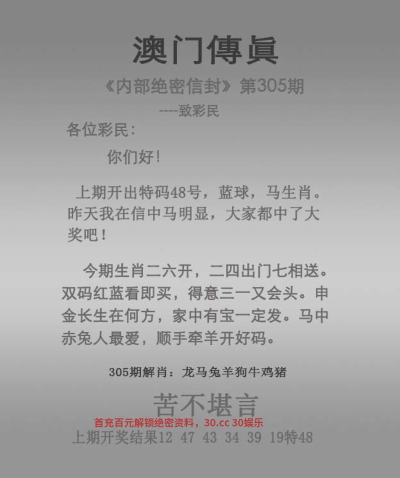 | 300期 今期生肖三三开,六七扬帆三四出 蓝蓝绿绿中特期,曾说同人不同命 西天路上寻特肖,琐窗风雨三二情 六畜兴旺家中肖,强盗从来图谋利 |
